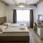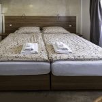 Pokoj číslo 1 je skvělým výběrem pro dva páry nebo rodinu s dospívajícími dětmi. Tento pokoj nabízí dvě samostatné ložnice, každá s vlastní koupelnou, která obsahuje sprchový kout a toaletu. Vstup do pokojů je společný přes předsíňku, která je spojena se zastřešenou terasou. Tato terasa je vybavena velkým dubovým stolem a lavicemi, ideálními pro společné stolování, a také pohodlným křeslem pro odpočinek. Obě ložnice jsou vybavené šatní skříní, prostornou manželskou postelí, televizí, ledničkou a klimatizací. Možnost zapůjčení plynového grillu